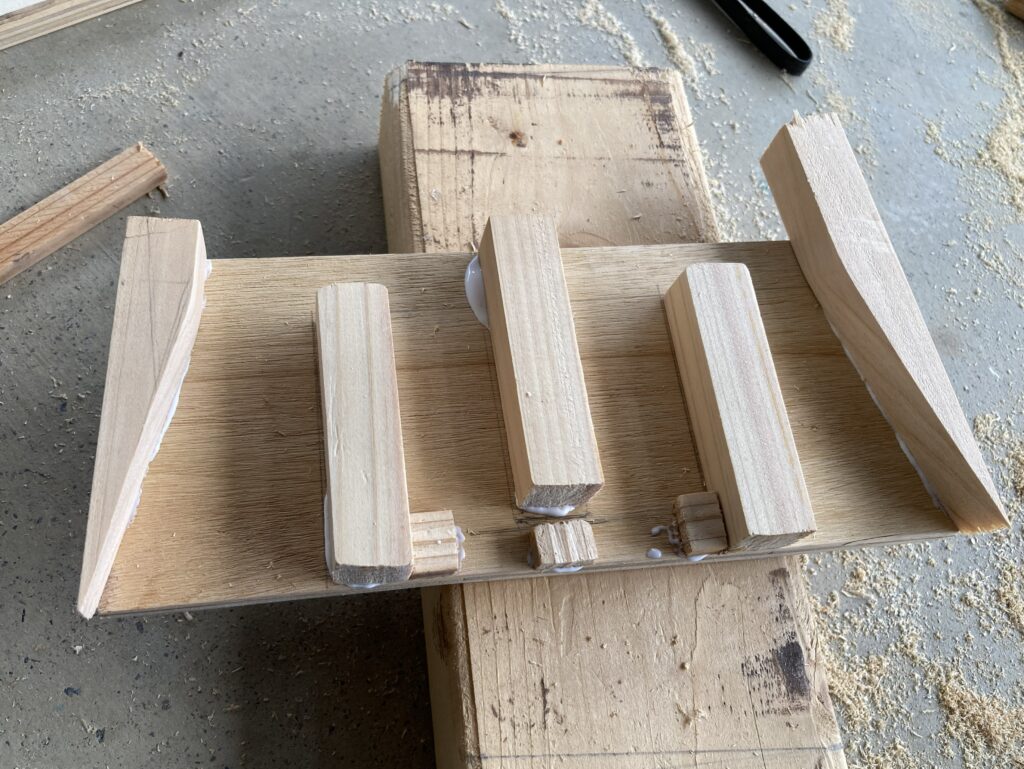 今回は、ベニヤ板や1.5mmの角材を使って、臨機応変に製作を進めていきました。