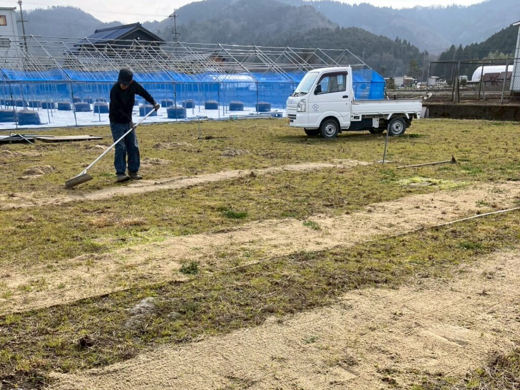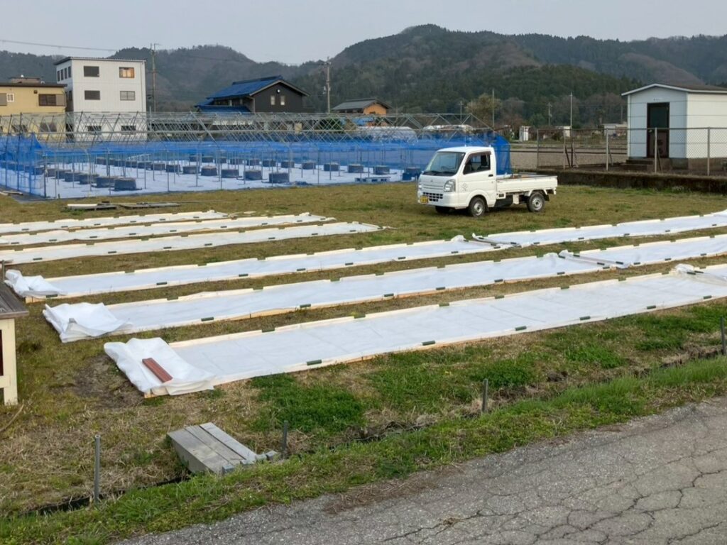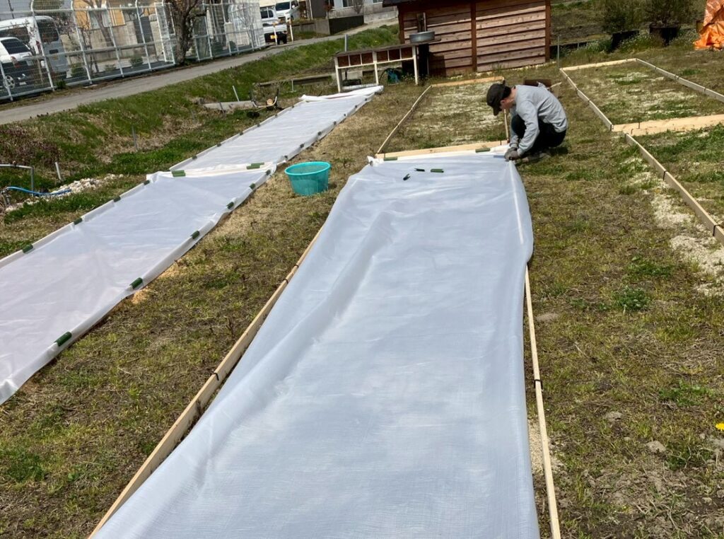 苗箱を並べ、トンネル状にシートを張るのに半日かかりました。