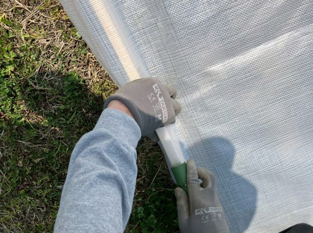 - 園芸枠の上に太陽光反射シート(ペアレスシート)をトンネル状にかける