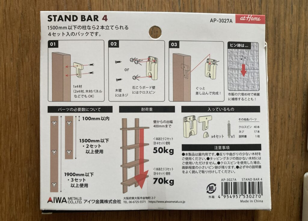 STAND BAR は、「壁」に1×4材などの木材を「柱」として立てるための道具です。