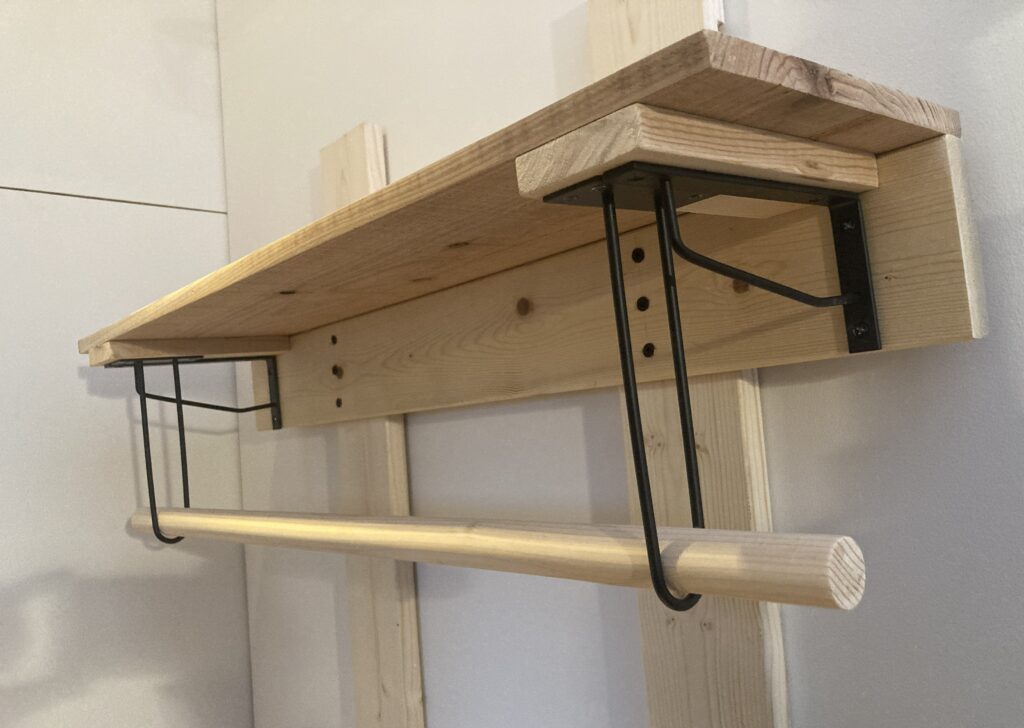 壁にピッタリとくっついた、ハンガーラックとカバン置きができました!!