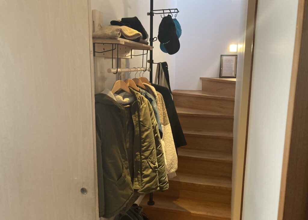 作っておけば良かったと思ったのは、裏口を入ったところにあるウォークインクローゼットです。